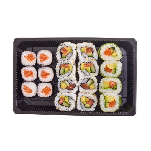CALIFORNIA SAUMON & MAKI MIXTE: 8 california saumon, 6 maki saumon, 4 cristal saumon.