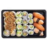 PLATEAU TAKAYAMA / 2 sushi crevette, 2 sushi saumon, 8 california thon cuit mayonnaise oignons frits, 4 cristal crevette, 4 california saumon, 4 maki avocat