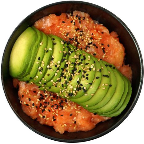 Riz tartare saumon avocat, graines de sésame.