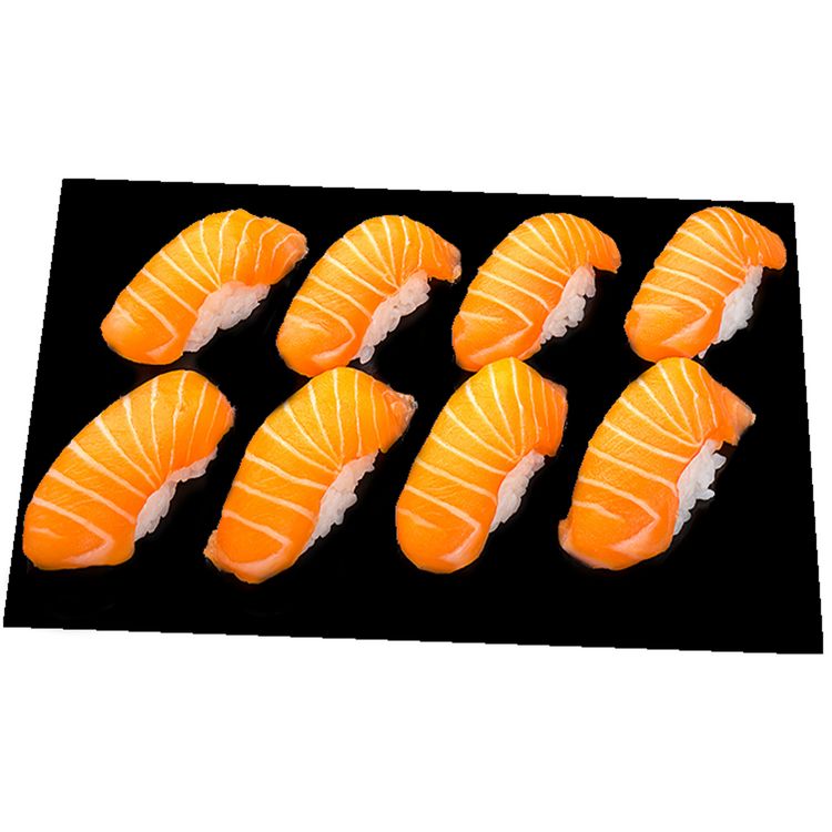 riz vinaigré 67% (riz, vinaigre de riz (sucre, vinaigre, eau, sel, sirop de fructose-glucose, mélasse de canne),eau), saumon de Norvège 33%.