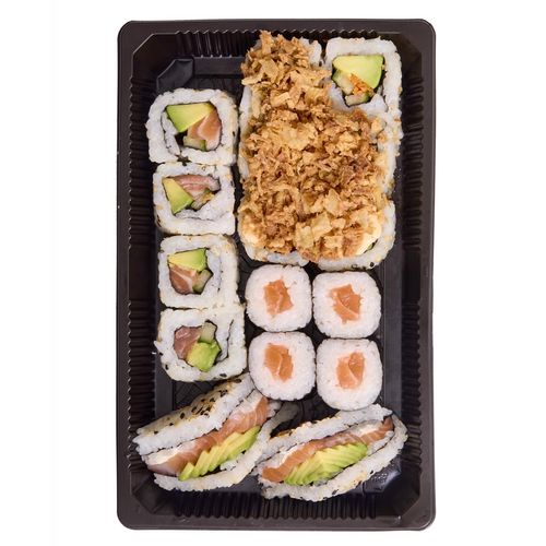 Sushi Go : 4 maki saumon, 4 california saumon, 2 rice sandwich saumon, 6 crunch végétariens: Photo non contractuelle