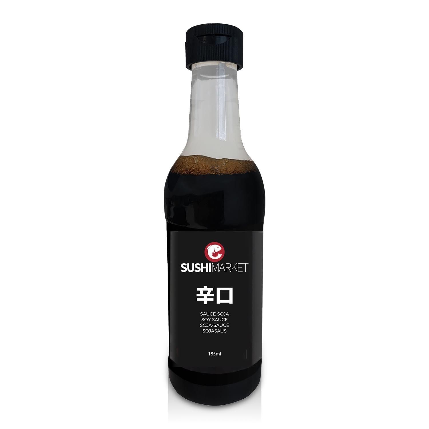 Ingrédients : sauce SOJA 90% (eau, grains de SOJA, sel, farine de BLE), eau, acidifiant : acide lactique, conservateurs: sorbate de potassium, benzoate de sodium