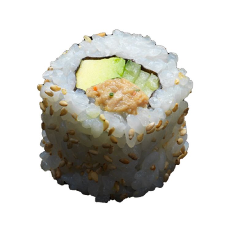 california thon cuit (riz vinaigre*, 22% appareil au thon (THON (POISSON) au naturel (thon Listao), eau, sel), mayonnaise [huile végétale de colza ou tournesol ou SOJA, eau, jaune d'OEUF salé, vinaigre d'alcool, moutarde (eau, graines de MOUTARDE, vinaigre, sel, acidifiant : acide citrique, conservateur : diSULFITE de potassium, épice), sucre, sel, amidon modifié de mais, stabilisants : gomme de guar et gomme de xanthane, colorant : béta carotène], menthe, mélange d’épices togorashi (piment de cayenne, zeste de mandarine, SESAME blanc, SESAME noir, laitue de mer), concombre, avocat, SESAME, feuilles d'algue (algue séchée (Porphyra Yezoensis)))