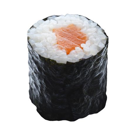 Ingrédients : "Maki saumon- Ingrédients: riz vinaigré*, saumon (SAUMON Salmo salar (POISSON)), feuilles d'algue yakinori (feuilles d'algue (algue séchée (Porphyra Yezoensis)))
