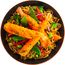 Nouilles sautés aux légumes et crevette (75% nouilles sautées aux légumes décongelés (nouille cuite 55% [eau, nouille 25% (farine de BLE, eau, sel)], eau, miel, sauce soja 4,2% (eau, SOJA, BLE, sel, alcool), chou blanc 3,7%, shiitaké 2,8%, huile de SESAME, carotte 2,6%, petit pois 2,6%, haricot vert 2,2%, poivron rouge 2,1%, fève de SOJA 2,0%, brocolis 2,0%, ail, asperge 1,5%, pois gourmand 1,5%, gingembre, amidon de maïs, caramel (sucre, eau), 22% crevettes tempura (CREVETTE blanche du Pacific (CRUSTACES) 40%, panure amidon, tapioca (GLUTEN)), sauce teriyaki (sauce SOJA (eau, graines de SOJA, BLE (GLUTEN), sel), sucre, eau, amidon de maïs, purée d'oignon, vinaigre d'alcool, concentré de jus de pomme, poudre d'ail, concentré de jus de citron), ciboulette)