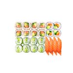 Ingrédients : Plateau Itchi- Ingrédients: California saumon (riz vinaigré*, saumon ( Salmo salar (POISSON) (FAO 27 Norvège)), concombre, avocat, SESAME, feuilles d'algue yakinori (feuilles d'algue (algue séchée (Porphyra Yezoensis)))), Spring veggie (riz vinaigré*, cream cheese (fromage naturel au sel de Guérande (babeurre (LAIT), CREME (LAIT), LAIT écrème, sel de Guérande (1,1%), babeurre déshydrate (LAIT), protéines de LAIT, ferments lactiques (LAIT))), concombre, avocat, feuilles de riz (feuilles de riz (farine de tapioca, farine de riz, eau, sel)), laitue), Sushi saumon (riz vinaigré*, saumon ( Salmo salar (POISSON) (FAO 27 Norvège))), Maki sweet citrus (riz vinaigré*, avocat, sauce sweet chili ( (eau, sucre, piment, ail, amidon de tapioca, conservateur: E260, sel, épaississant: E415)), concombre, carotte, citron vert, jus, oignon rouge, menthe, feuilles d'algue yakinori (feuilles d'algue (algue séchée (Porphyra Yezoensis))))