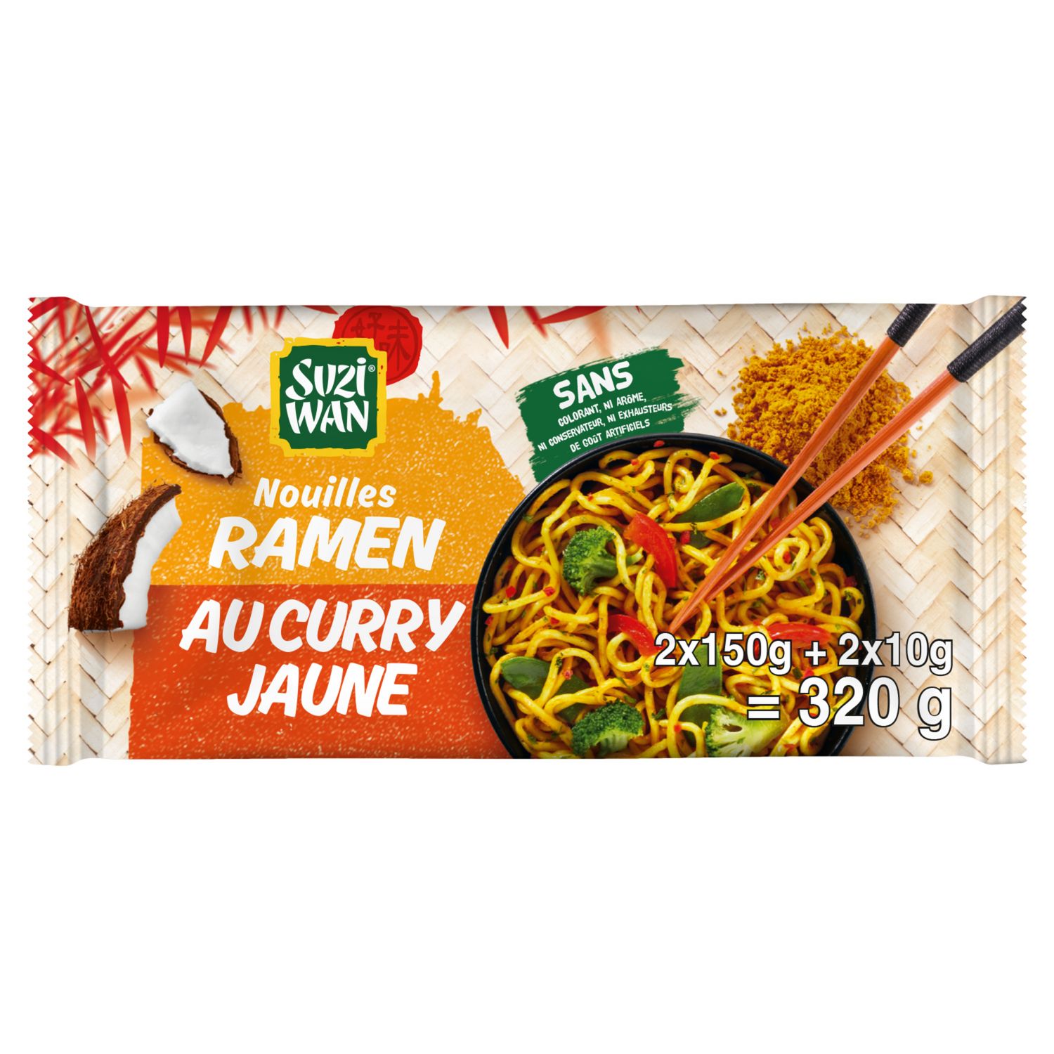 Découvrez les saveurs de l'Asie avec nos nouilles précuites ramen au curry jaune Suzi Wan®. Sautées ou en soupes, les nouilles précuites sont prêtes en 3 minutes. Il ne suffit que d'ajouter le sachet d'assaisonnement pour donner des couleurs d'Asie à vos repas et du pep's à vos assiettes.