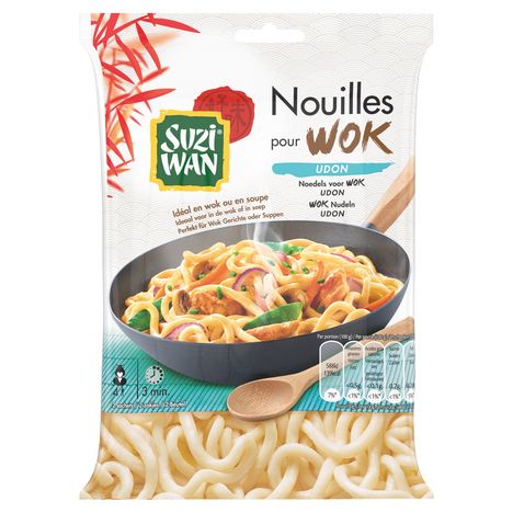 Les nouilles Udon Suzi Wan®, nouilles épaisses d'origine japonaise, sont idéales pour vos recettes de soupes et nouilles sautées. Prêtes en seulement 3 minutes, elles sont parfaites pour improviser un repas délicieux et rapide ! Nutriscore A Note Yuka : 90/100 NOUILLES DE BLÉ PRÉCUITS.