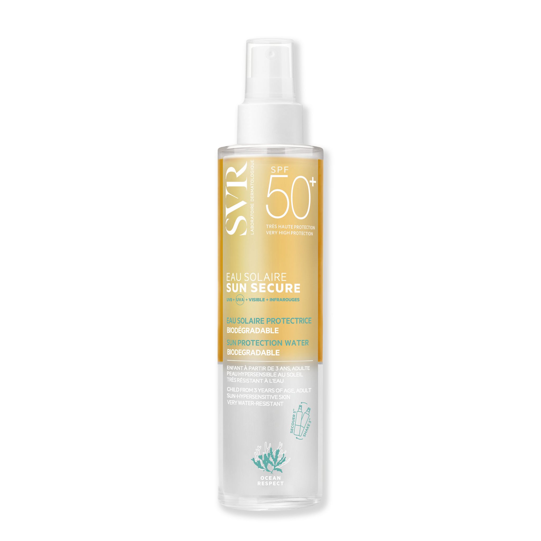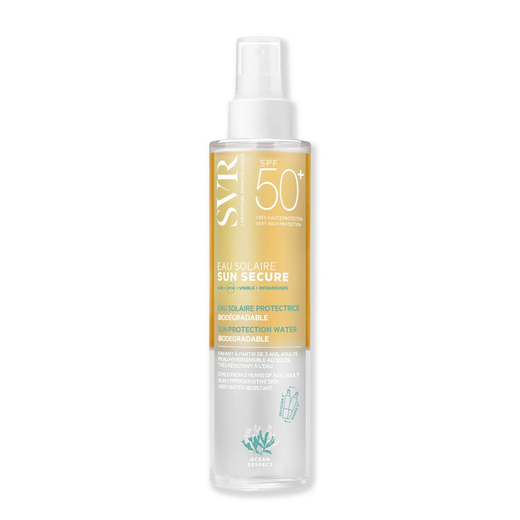 Eau solaire très haute protection rafraîchissante et hydratante. Résiste à la transpiration, au sable et aux frottements. Enfant à partir de 3 ans, adulte. Non comédogène. Sans octocrylène. Bien agiter avant emploi pour mélanger les 2 phases. Appliquer uniformément avant l’exposition. Renouveler fréquemment surtout après avoir transpiré, nagé ou s’être essuyé. Vaporiser dans les mains avant d’appliquer sur le visage.