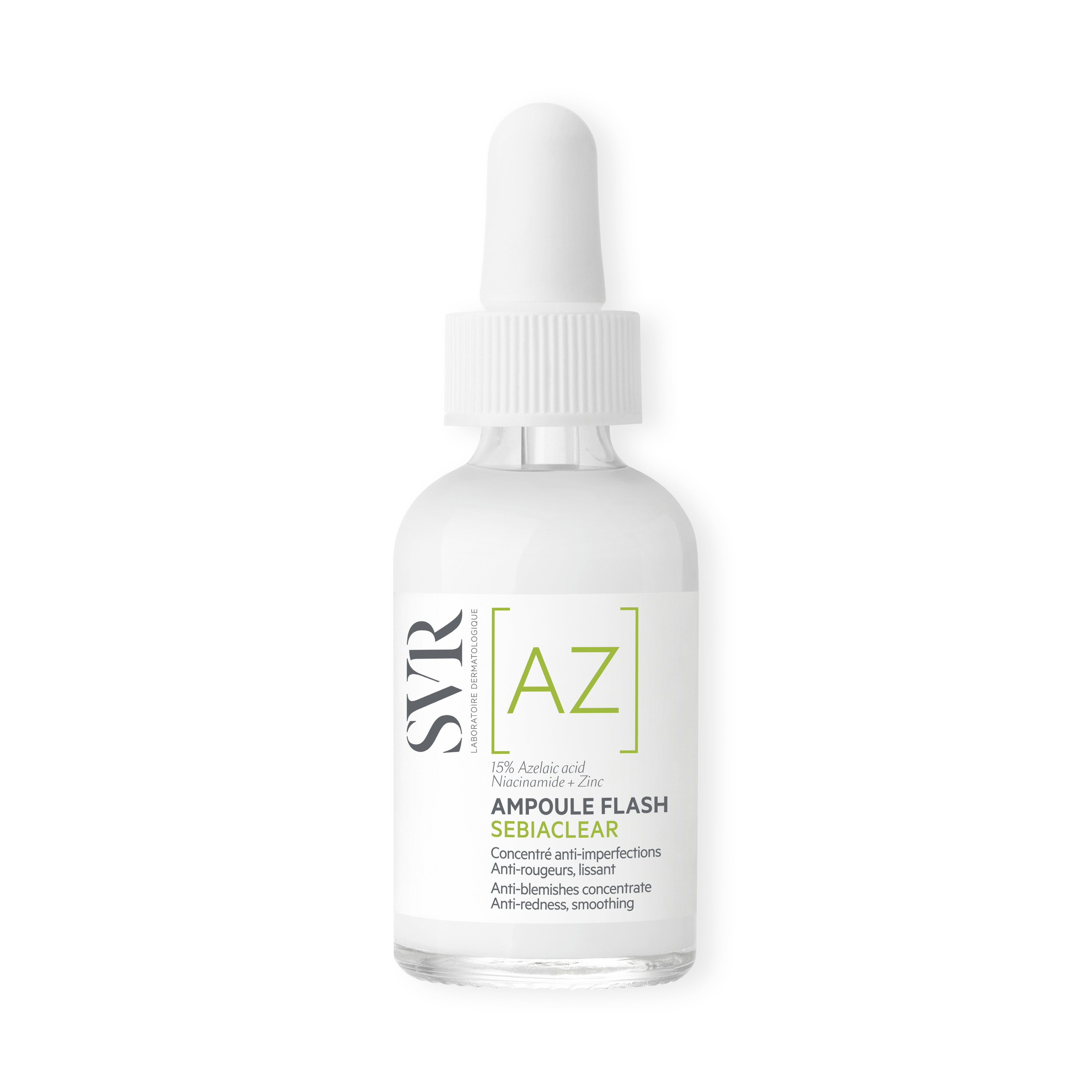 Pour obtenir le meilleur équilibre efficacité / tolérance, le Laboratoire SVR a formulé ce soin avec 15% d’acide azélaïque, actif dermatologique anti-inflammatoire et kératolytique reconnu. Associé à l’acide salicylique, au zinc et à la niacinamide, SEBIACLEAR Ampoule flash désincruste en profondeur, réduit visiblement les imperfections et les rougeurs en un temps record. Sa texture lactée et légère fusionne avec la peau pour un fini imperceptible. La peau est désincrustée, purifiée, apaisée et confortable.