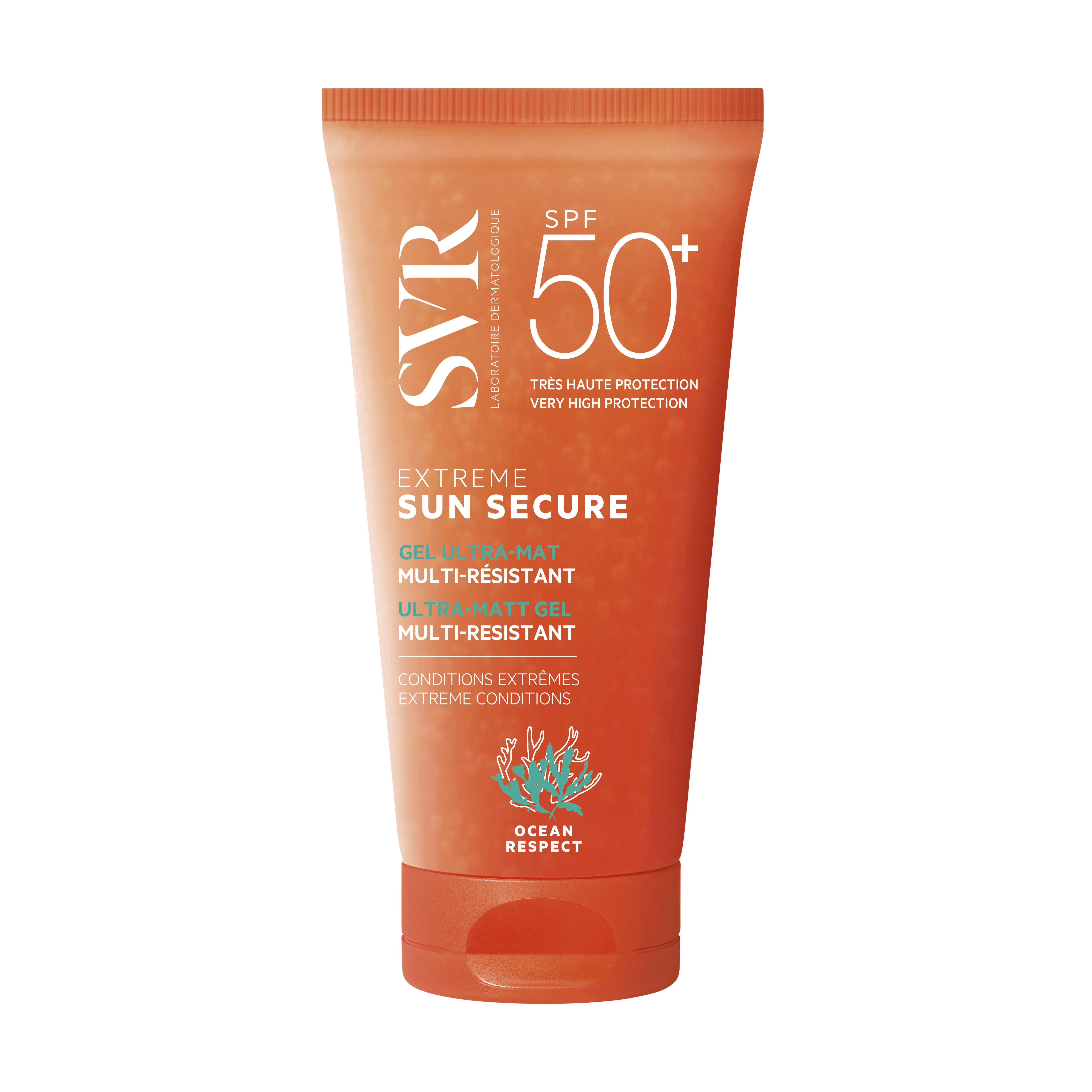 SUN SECURE Extreme SPF50+ offre une très haute protection solaire dans un gel ultra mat multi-résistant au toucher non gras. Inédite, sa texture baume-en-gel transparente et ultra-fondante pénètre rapidement pour une application express. Son délicat parfum d’été donne envie d’en réappliquer encore et encore. Résiste à l’eau, à la transpiration et aux frottements. Idéal pour les sportifs car il ne coule pas, pour les hommes et les ados car il est totalement invisible et non collant, et pour tous les réfractaires à la protection solaire !