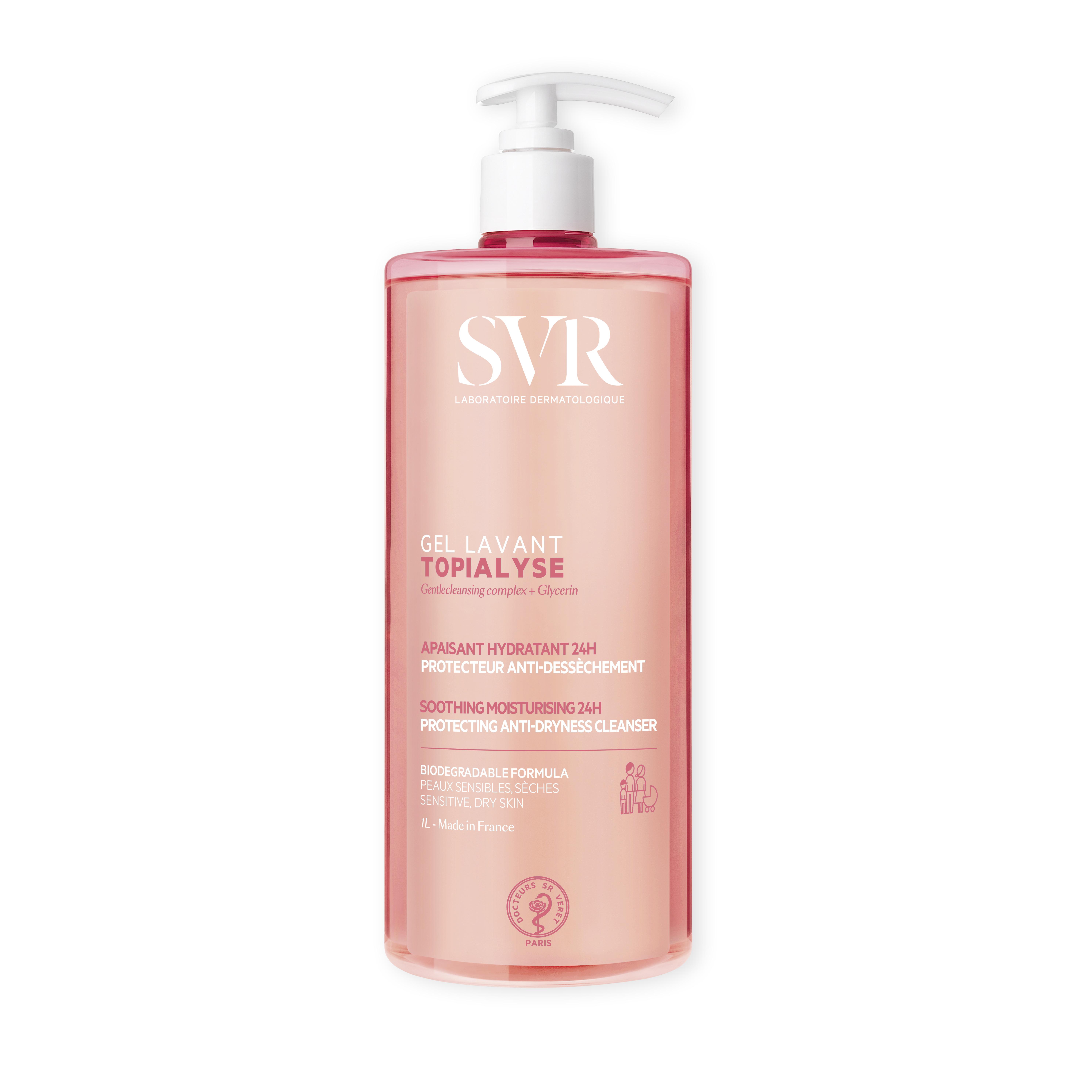 TOPIALYSE GEL LAVANT, nettoyant doux protecteur anti-dessèchement protège de la tête aux pieds les peaux sensibles et sèches de toute la famille.