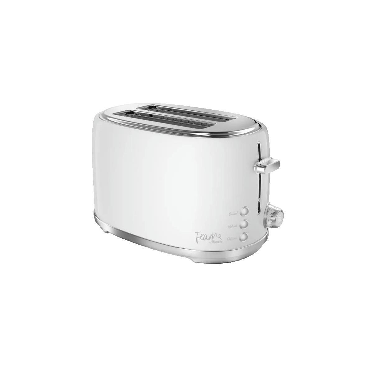Découvrez le grille-pain rétro Fearne de la marque Swan, conçu pour votre cuisine. Avec une puissance de 800 W, il permet de préparer jusqu'à deux toasts simultanément. Doté d'un design élégant avec des éléments chromés et une finition grise, il s'intègre parfaitement dans tout intérieur. Ce grille-