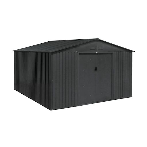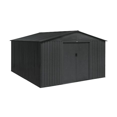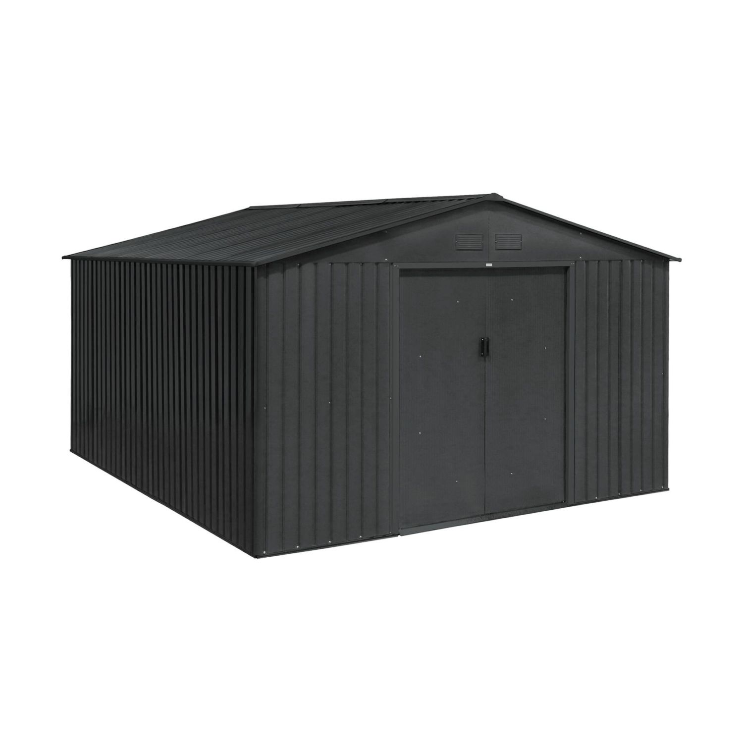 Abri de jardin en métal - Slack - 12.99 m² anthracite - Deux portes coulissantes. kit de fixation sol inclus. L 341 x 386 x 211cm