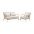 Avec ses lignes arrondies et sa structure en bois solide et chaleureuse, cet ensemble donnera un côté zen et épuré à votre intérieur. Le dossier et l'assise sont fermes et confortables. Pour encore plus de relaxation, les pieds arrière sont inclinés. Des petits coussins rectangulaires et moelleux sont inclus. (2 avec la banquette + 1 avec le fauteuil).