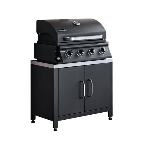 Barbecue à gaz avec 4 brûleurs à poser avec récupérateur de graisse + Meuble de cuisine extérieure en acier L80cm