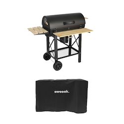 Barbecue américain charbon de bois - Serge noir - Smoker américain avec aérateurs. récupérateur de cendres. fumoir. housse