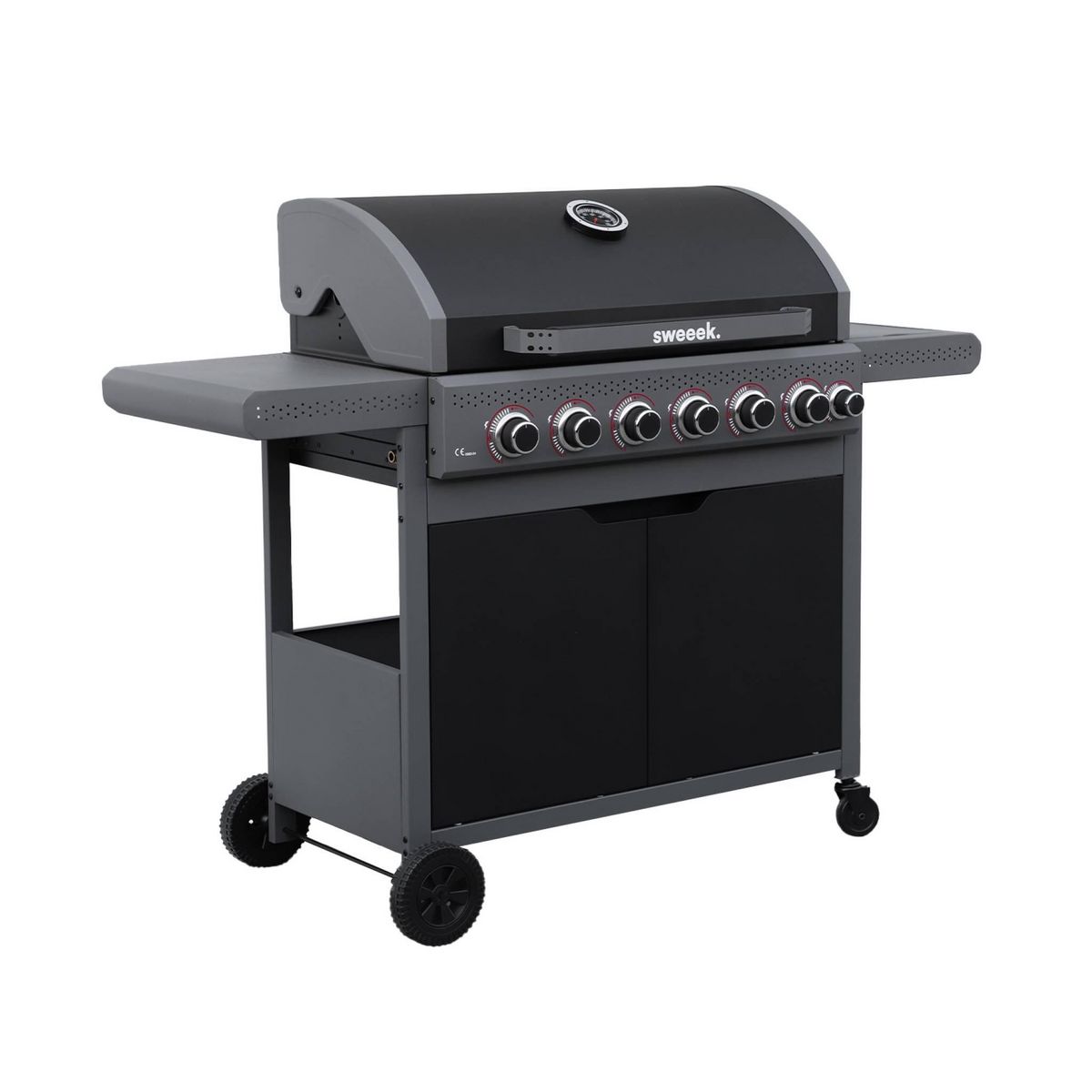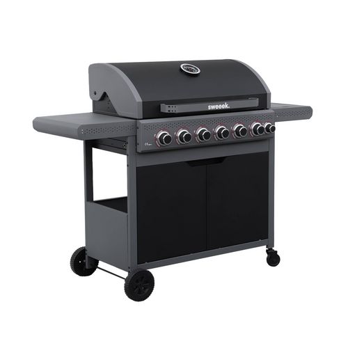 Les + produit : 6 feux puissants + 1 feu latéralPortes en façadeThermomètreSe déplace facilementToute la structure de ce barbecue à gaz est en acier de haute qualité recouvert de peinture résistante à la chaleur.Les brûleurs sont en acier inoxydableL'allumage est électronique par piézoLes 5 brûleurs