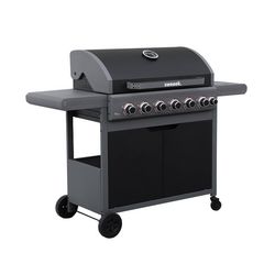 Barbecue au gaz Edmond noir - 6 brûleurs + 1 feu latéral. avec thermomètre. L 132x P62 x H143 cm