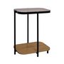 Bout de canapé vintage en métal noir avec 2 plateaux (verre et décor bois). bords arrondis