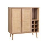 Buffet range bouteilles portes en cannage et décor bois avec casiers. buffet haut. vaisselier. 83cm