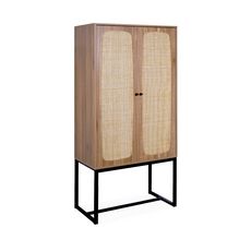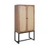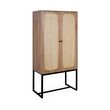 Buffet rétro décor bois foncé et cannage 2 portes avec pieds en métal noir H165cm