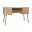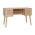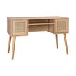 Bureau cannage et décor bois avec 2 portes. 1 casier ouvert. pieds compas