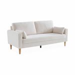 Canapé à bouclettes blanc cassé - Bjorn - Canapé 3 places fixe droit pieds bois. style scandinave