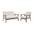 Canapé banquette 2 places et fauteuil tissu bouclette. pieds teinté noyer clair