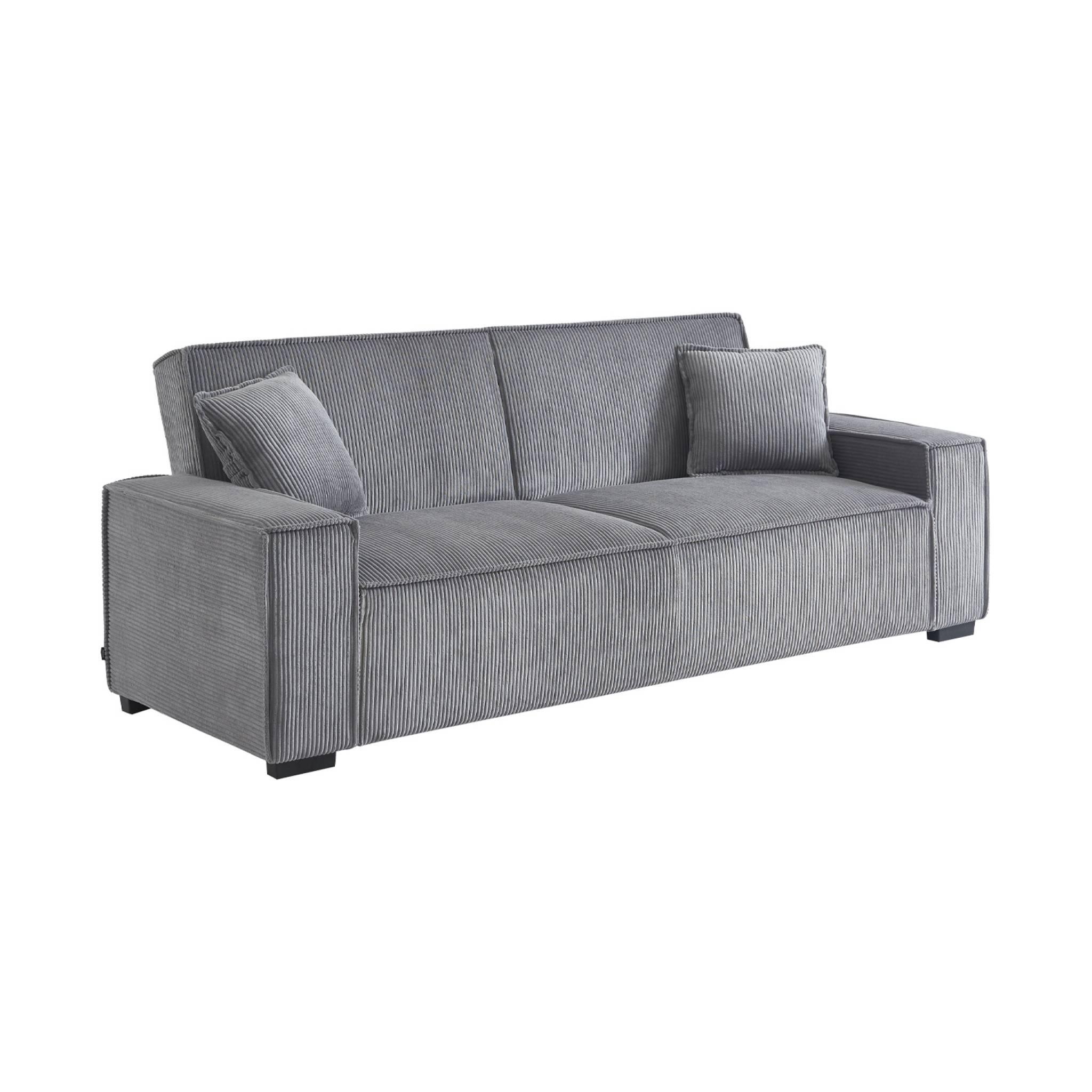 Canapé convertible 3 places gris clair velours côtelé L 231 x P 96.5 x H 80cm