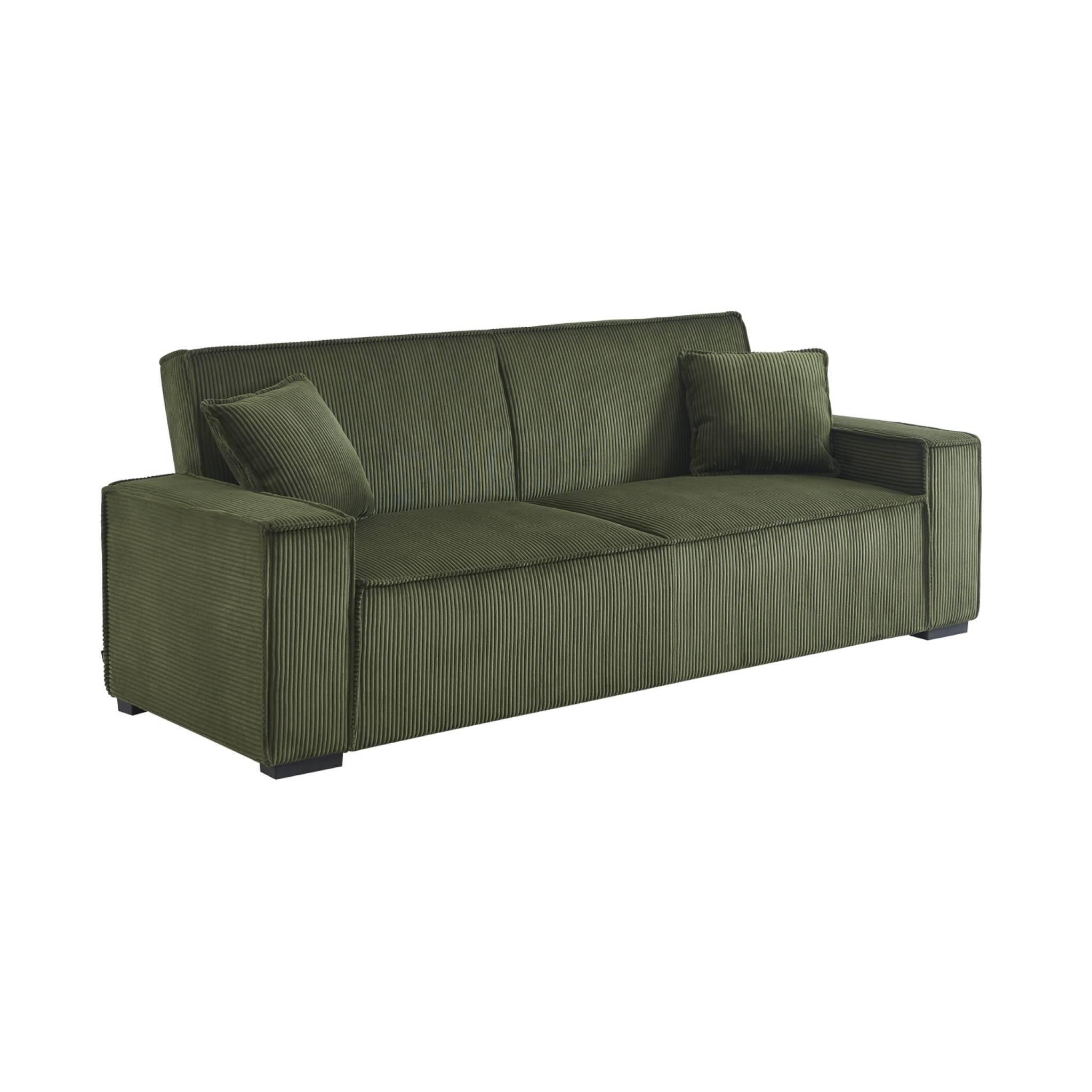 Canapé convertible 3 places kaki velours côtelé L 231 x P 96.5 x H 80cm