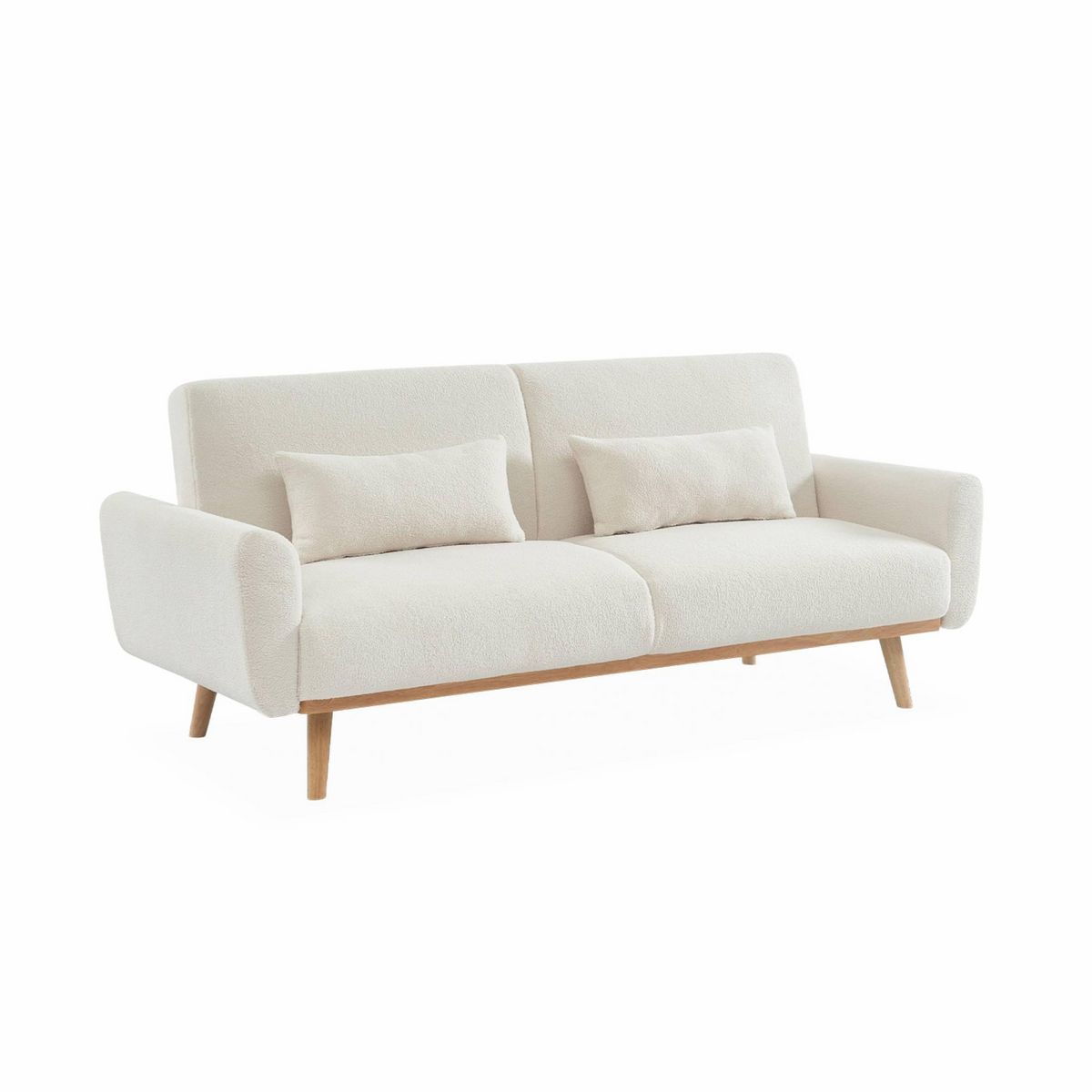 Les + produitCanapé convertibleRevêtement bouclettes blanchesPiètement boisMontage facileDe belles formes pour ce canapé OSKAR, au tissu confortable et au piètement en bois minimaliste. Vous serez également séduit par son systèmeinstantané d'inclinaison de dossier en 3 positions, canapé, dossier inc