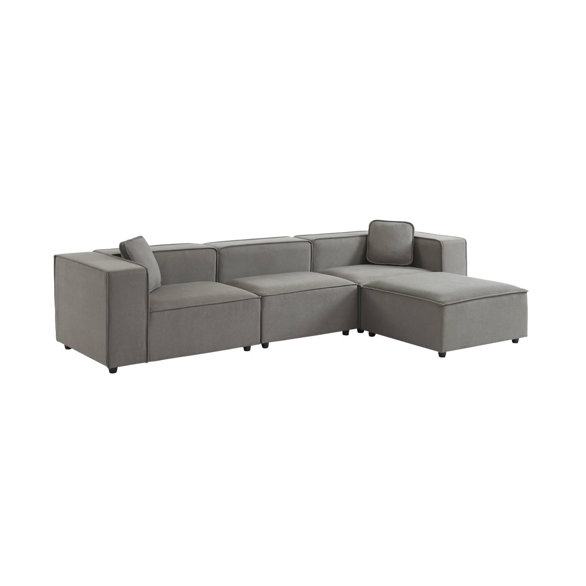 Canapé modulable tissu gris 3-4 places déperlant. 2 corners + 1 assise + 1 pouf