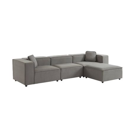 Son tissu déperlant assure une protection contre les petits accidents du quotidien, préservant la beauté du canapé en toutes circonstances. Deux petits coussins sont inclus pour un confort optimal. Personnalisez votre espace avec notre canapé modulable et créez un coin salon qui vous ressemble.