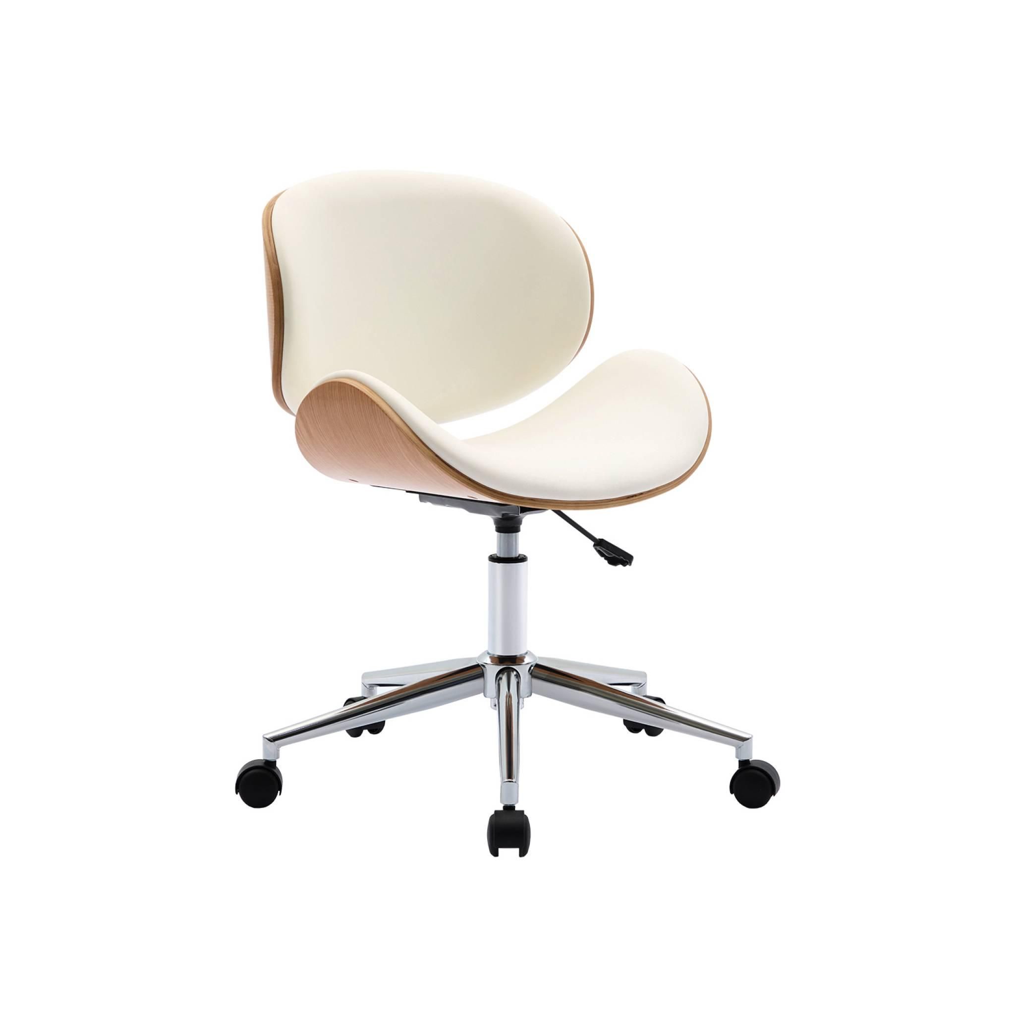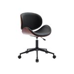 Chaise de bureau à roulettes décor bois courbé et simili cuir