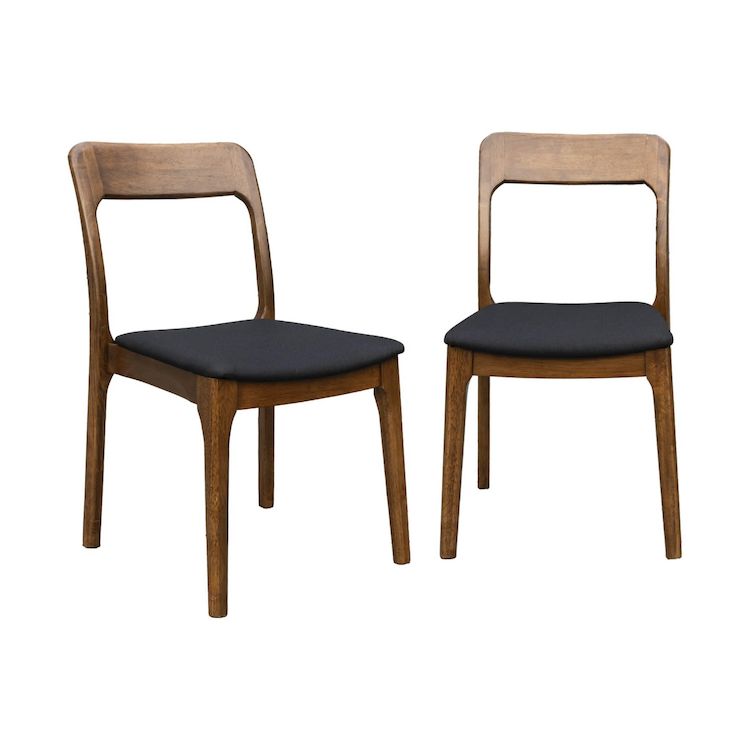 Chaise vintage en bois d'hévéa teinte noyer et tissu noir. L 48 x P 58 x H 81.5cm (Lot de 2)