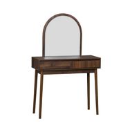 Coiffeuse décor bois LINEAR miroir arrondi 2 tiroirs 90 cm. façade striée. Noyer