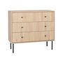 Les + produit :- 3 tiroirs- Idéal pour une chambre à coucher- Aspect bois rainuré - Piétement métal noir Une envie de modernité ? Cette commode est l'élément idéal à ajouter dans une chambre à coucher. Parents ou enfants, elle apporte un style contemporain à tout type d'intérieur grâce à ses rainure