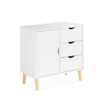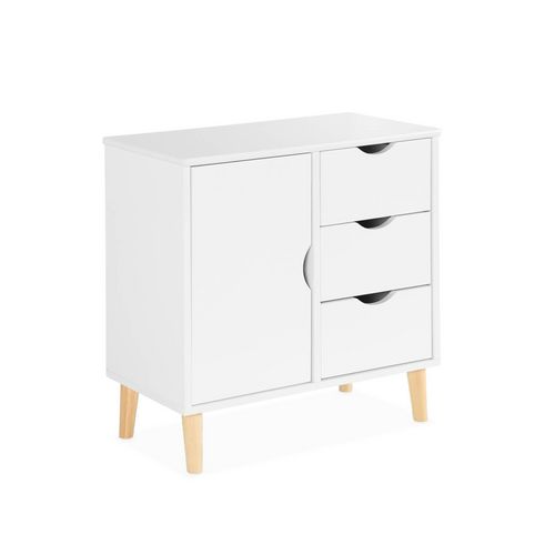 Commode enfant. 1 porte et 3 tiroirs. 2 étagères. blanc. pieds en pin