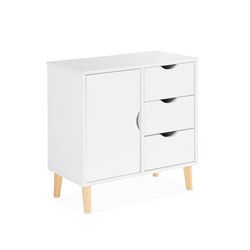 Optez pour notre commode enfant, avec 1 porte, 3 tiroirs et 2 étagères, pour maximiser l'espace dans la chambre de votre enfant. Robuste avec des pieds en pin et sécuritaire avec un kit anti-basculement, cette commode offre un rangement généreux pour les vêtements et jouets. Les pieds en pin ajoutent une touche chaleureuse et la finition soignée assure une intégration harmonieuse dans toute décoration.