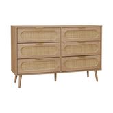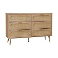 Commode. Eva. 6 tiroirs. décor bois. cannage arrondi L 120 x l 39 x H 79cm
