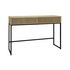 Console contemporaine avec 2 tiroirs en décor bois rainuré. structure et piètement en métal noir