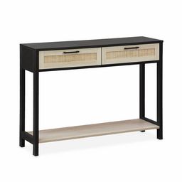 Console décor bois noir et cannage 100 x 30 x 75cm - Bianca - 2 tiroirs - 1 étagère