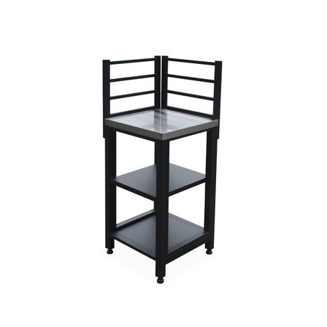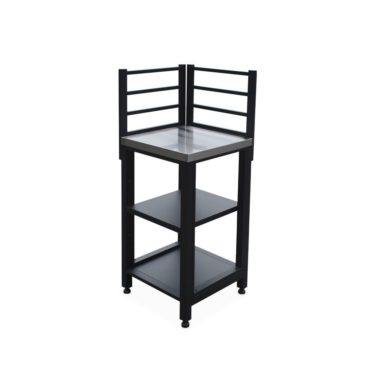 Les + produit :- Design intemporel - 2 étagères- Idéal dans un angle- Compatible avec toute une gamme à découvrirCe meuble constitue l'élément parfait pour une cuisine extérieure à la fois fonctionnelle et élégante. Sa couleur noire et son plateau en acier inoxydable lui confèrent un aspect intempor