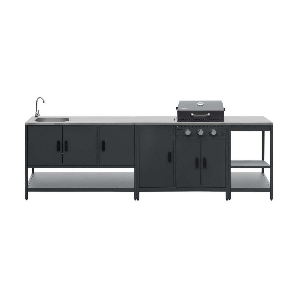 Compatible avec les modules de la même gamme, cette cuisine s'intègre parfaitement dans votre aménagement extérieur pour une configuration sur mesure adaptée à vos besoins.