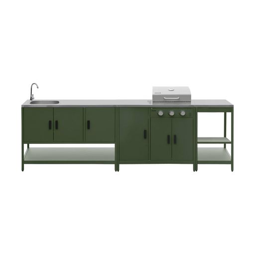 Cuisine extérieure Naxos 3 modules acier inoxydable vert avec barbecue gaz 3 brûleurs