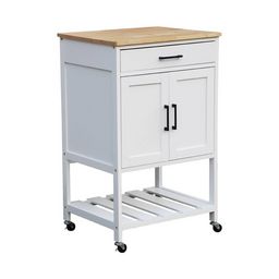 Desserte de cuisine BENDOR plateau en bois d'hévéa, 56 x 46 x 90 cm, 4 roues, 1 tiroir, 2 étagère, 1 double porte, style contemporain