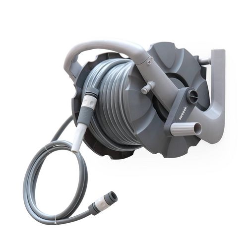 Les + produits : Déplacement facile grâce à la poignée Lance et raccords fournisKit d',installation mural fourniLégerColoris : grisCaractéristiques techniques : Type de dévidoir : manuelNez de robinet : automatique 3/4&rsquo,&rsquo, (1,9cm) avec réducteur amovible 1/2 &rsquo,&rsquo, (1,27cm)Lan