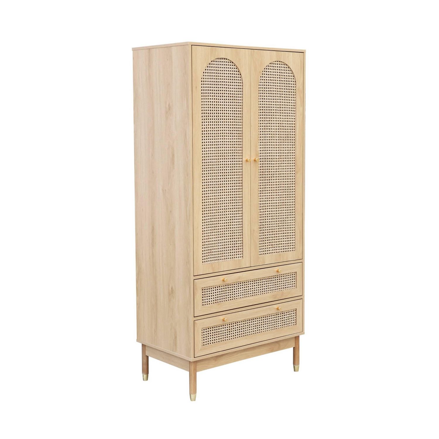 Ajoutez une touche bohème naturelle à votre intérieur avec le chaleureux dressing Judith. Sa teinte naturelle s'harmonise parfaitement avec tous les styles, tandis que sa façade en cannage ajoute une note tendance et authentique. Conçu en panneaux de particules, ce dressing est à la fois robuste et trouvera facilement sa place dans votre chambre.