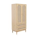 Dressing penderie JUDITH 2 portes 2 tiroirs cannage. poignées et pieds finition dorée. 80 x 50 x 180 cm